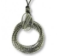 Colgante de seora Viceroy Fashion de metal, circulo grande tallado y entrepiezas. Cordon de cuero doble de color negro, cierre de mosquetn con cadenita de metal para poder ajustar el largo.