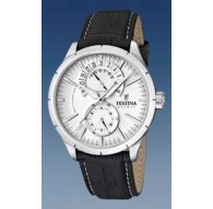Reloj de acero lotus con movimiento de cuarzo analgico con calendario. Cristal mineral, esfera de color plata, con numeros en negro. Caja de acero redonda, pulsera de caucho negra haciendo el dibujo de un neumatico. W.R. 100m