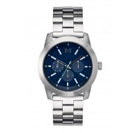 Reloj cadete de acero Lotus con movimiento de cuarzo analgico, multifuncin. Caja de acero redonda. Esfera azul oscuro. Pulsera de acero. W.R. 50m