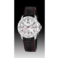 Reloj Casio con movimiento de cuarzo analgico. Caja de resina negra redonda, esfera de color blanca. Pulsera de resina.