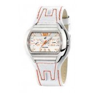 Reloj de seora Calypso con movimiento de cuarzo analgico, caja de acero redonda. Esfera blanca, pulsera de piel roja con los bordes en blanco. W.R. 50m