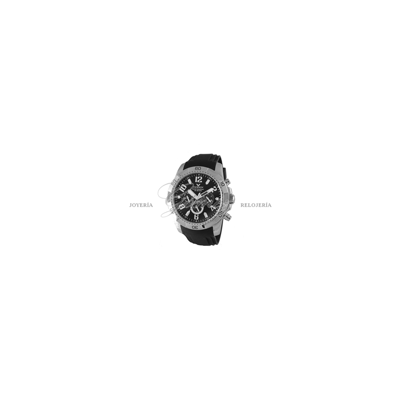 Reloj de caballero Viceroy con movimiento de cuarzo analógico, multifunción. Caja de acero redonda, esfera de color negra, cristal mineral. Pulsera de caucho de color negra. W.R. 100m