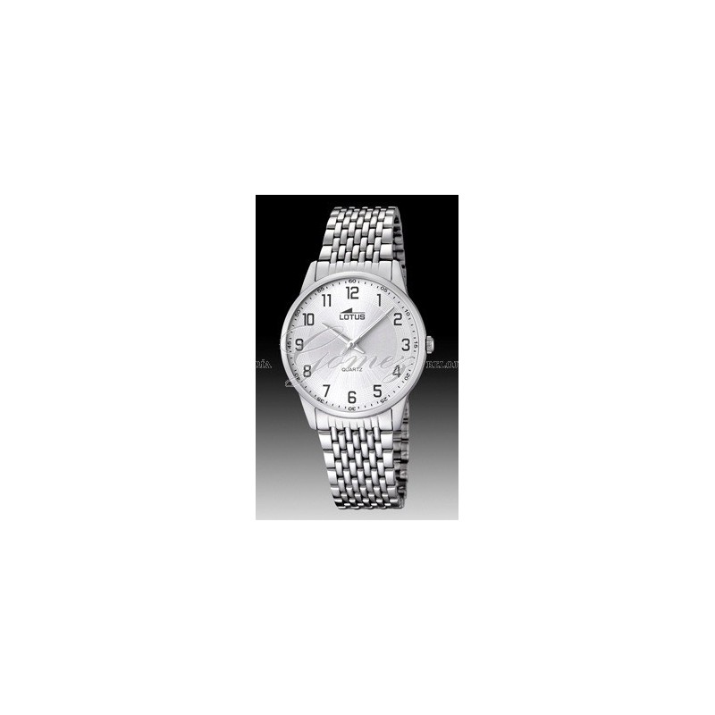 Reloj de caballero Lotus de caballero con movimiento de cuarzo analógico. Caja de acero redonda, esfera de color plata con numeros negros. Armys de acero. W.R. 50m