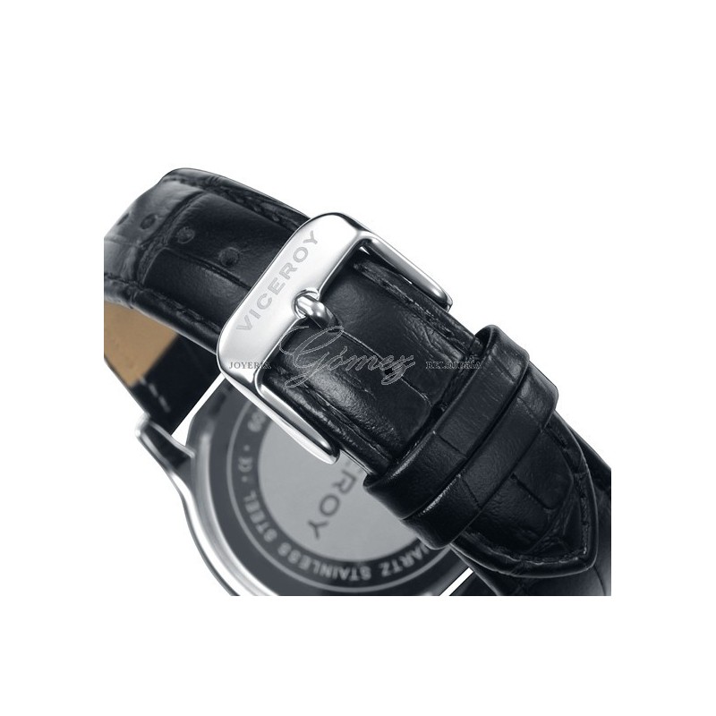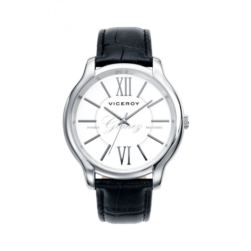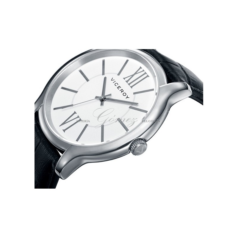 Reloj de caballero Viceroy con movimiento de cuarzo analógico. Caja de acero redonda, esfera de color blanca, cristal mineral. Pulsera de piel de color negro. W.R. 30m