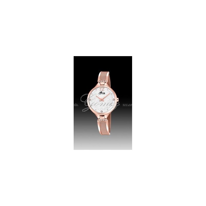 Reloj de señora Lotus con movimiento de cuarzo analógico. Caja de acero redonda. Esfera con pedreria. Pulsera de acero. W.R. 50m