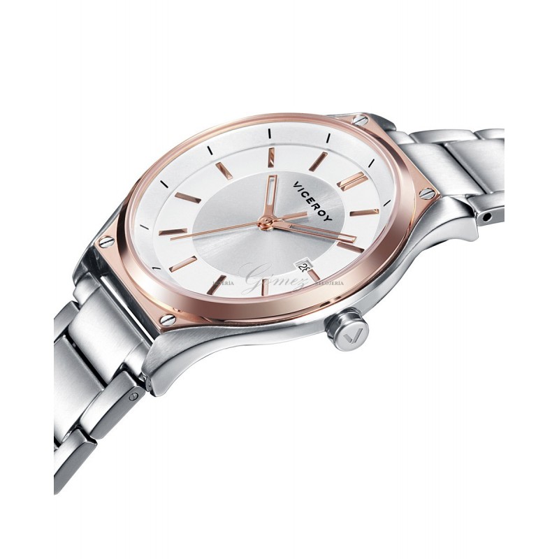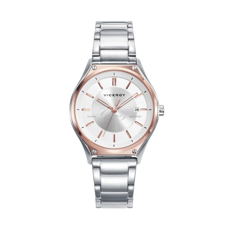 Reloj de señora Viceroy con movimiento de cuarzo analógico. Caja de acero con tratamiento IP rosa, cristal mineral. Pulsera de acero. W.R. 50m