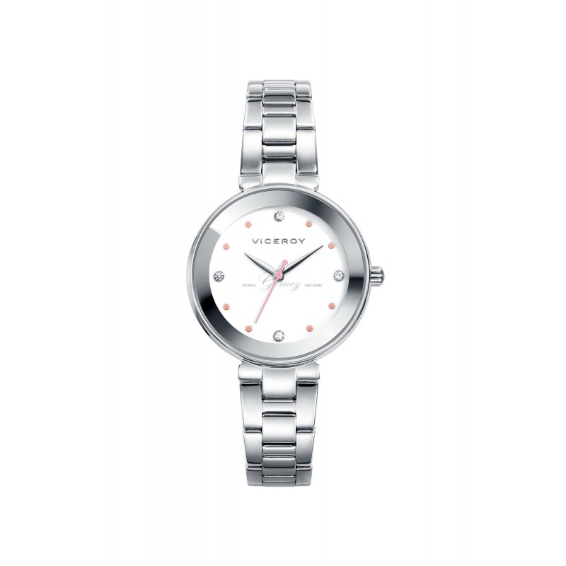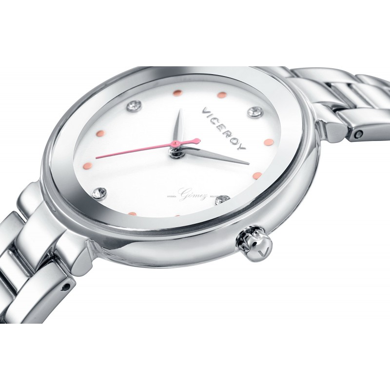 Reloj de señora Viceroy con movimiento de cuarzo analógico. Caja de acero,cristal mineral, esfera de color blanca. Pulsera de acero. W.R. 30m