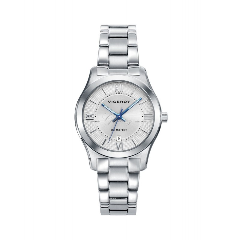 Reloj de señora Viceroy con movimiento de cuarzo analógico. Caja de acero,cristal mineral, esfera de color plata. Pulsera de acero. W.R. 50m