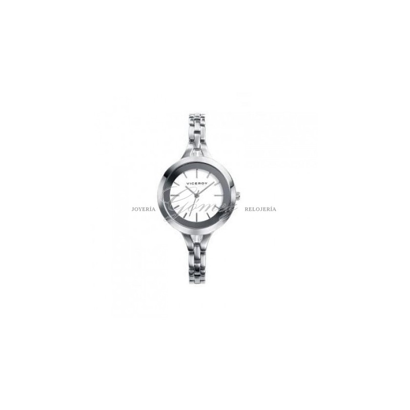 Reloj de señora Viceroy con movimiento de cuarzo analógico. Caja de acero redonda, esfera blanca, cristal mineral. Pulsera de eslabones de acero. W.R. 30m