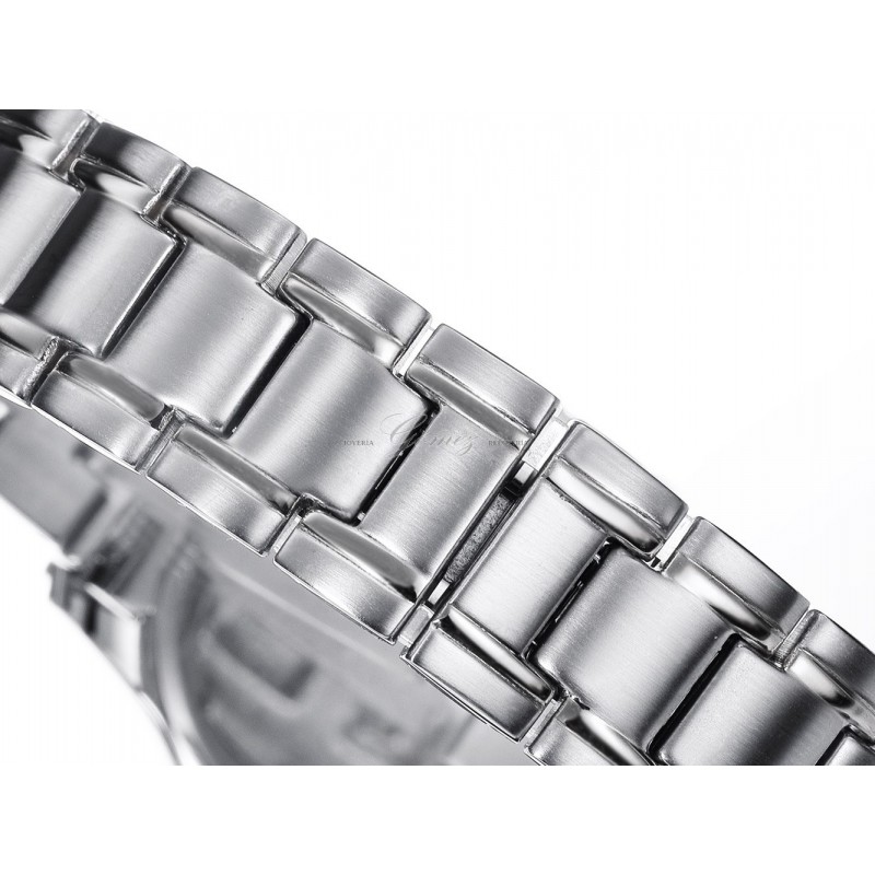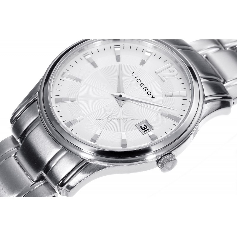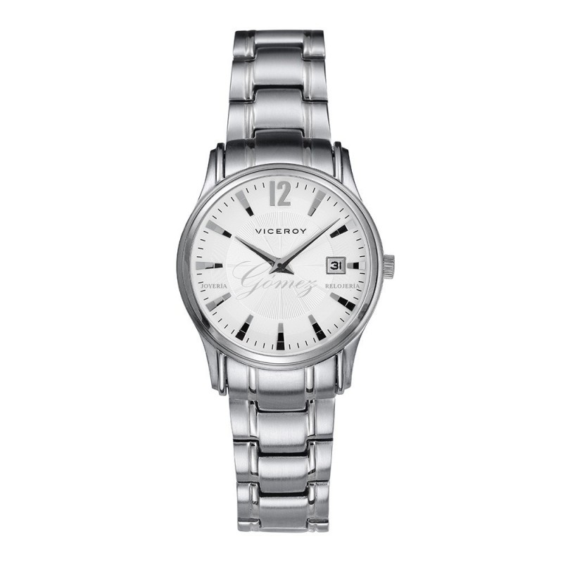 Reloj de señora Viceroy con movimiento de cuarzo analógico, calendario. Caja de acero redonda, esfera de color plata, cristal mineral. Pulsera de acero. W.R. 30m