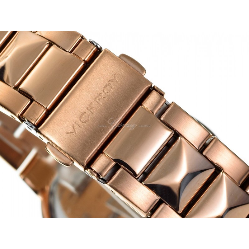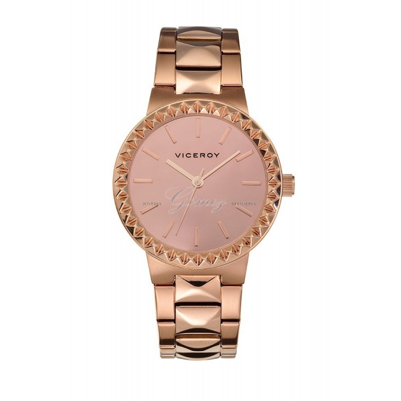 Reloj de señora Viceroy con movimiento de cuarzo analógico. Caja de acero redonda con tramiento IP rosa, esfera, números y agujas con tratamiento IP rosa, cristal mineral. Pulsera de acero con tratamiento IP rosa. W.R. 50m