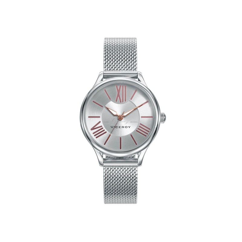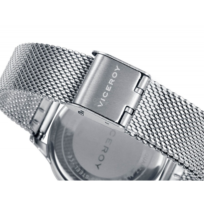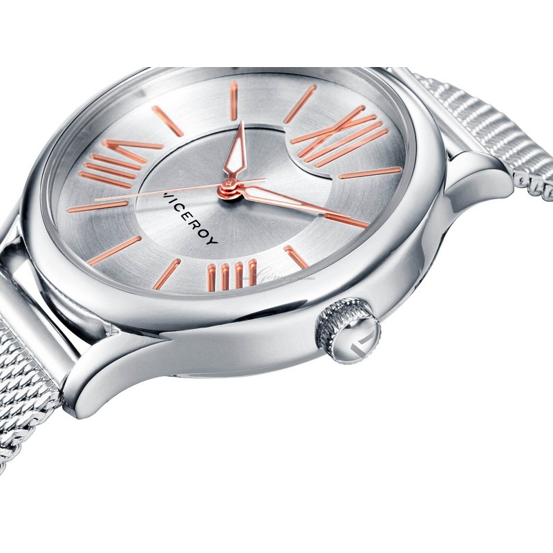 Reloj de señora Viceroy con movimiento de cuarzo analógico. Caja de acero, cristal mineral, esfera bicolor. Pulsera de acero con malla milanesa. W.R. 50m