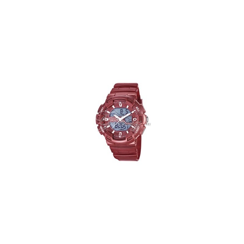 Reloj unisex Calypso con movimiento de cuarzo digital. Funciones del display digital: Uso horario. Fecha. Cronmetro. Alarma. Luz por pulsacin. Cristal mineral. Caja poliuretano. Correa de poliuretano rojo. W.R. 50m