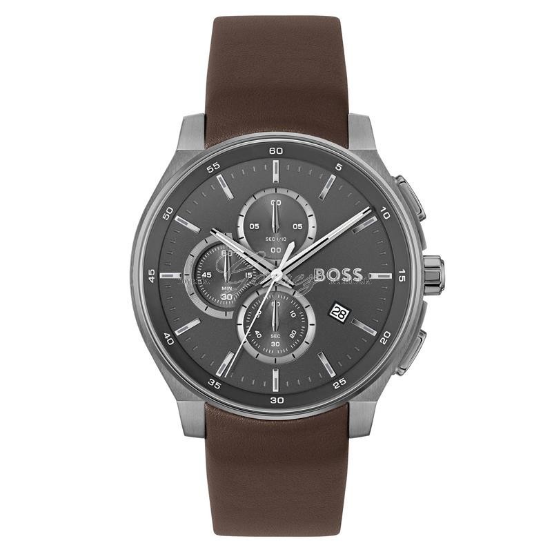 Reloj Boss para hombre de la colección Peak 2.0 fabricado en acero inoxidable en gris metalizado y piel en color marrón.