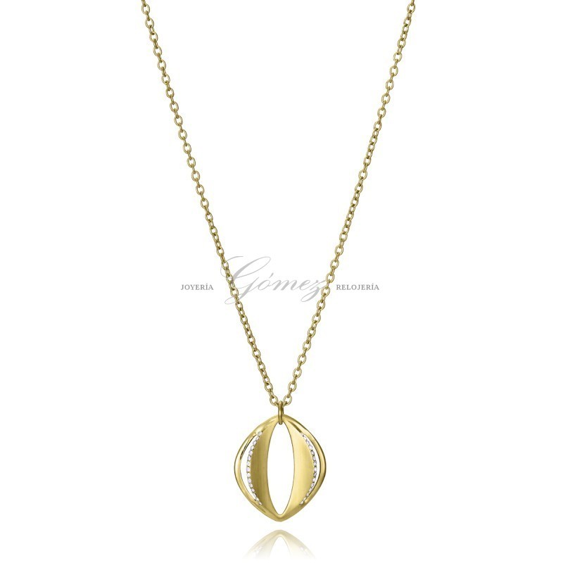 Collar Viceroy Fashion para mujer fabricado en acero bañado en oro amarillo compuesto por una fina y elegante cadena que da lugar a un colgante circular con circonitas blancas. Su cierre es de mosquetón ajustable mediante cadena extensible.