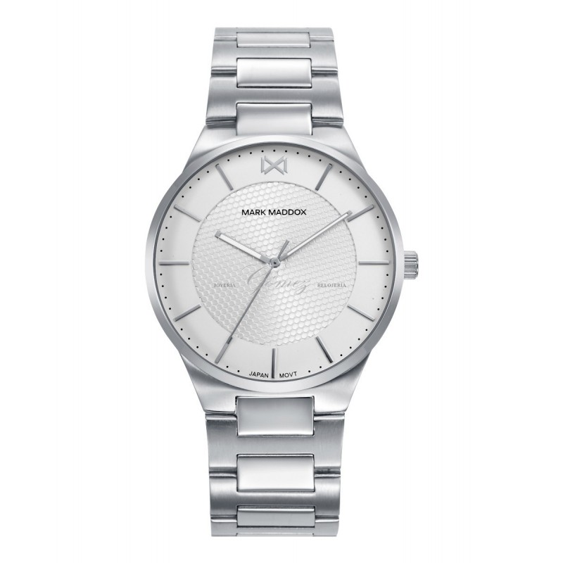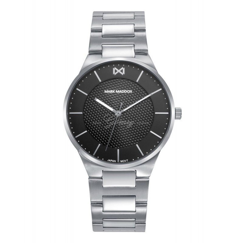 Reloj de hombre presenta una caja y brazalete de acero que transmiten solidez y elegancia. Su esfera negra con índices y las agujas horarias en color plata garantizan legibilidad y precisión, mientras que el cristal mineral aporta resistencia.