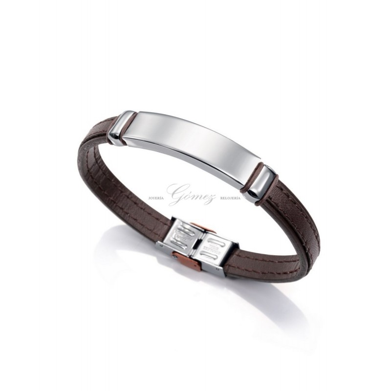 Pulsera de hombre Viceroy Air de piel plana en azul, pespunte en azul claro y placa central de acero, un componente a cada lago, cierre ajustable y largo 21,5cm.