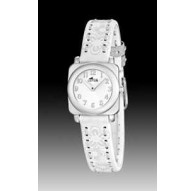 Reloj de señora Viceroy con movimiento de cuarzo analógico, calendario. Caja de acero redonda, esfera blanca, cristal mineral. Pulsera de acero. W.R. 30m